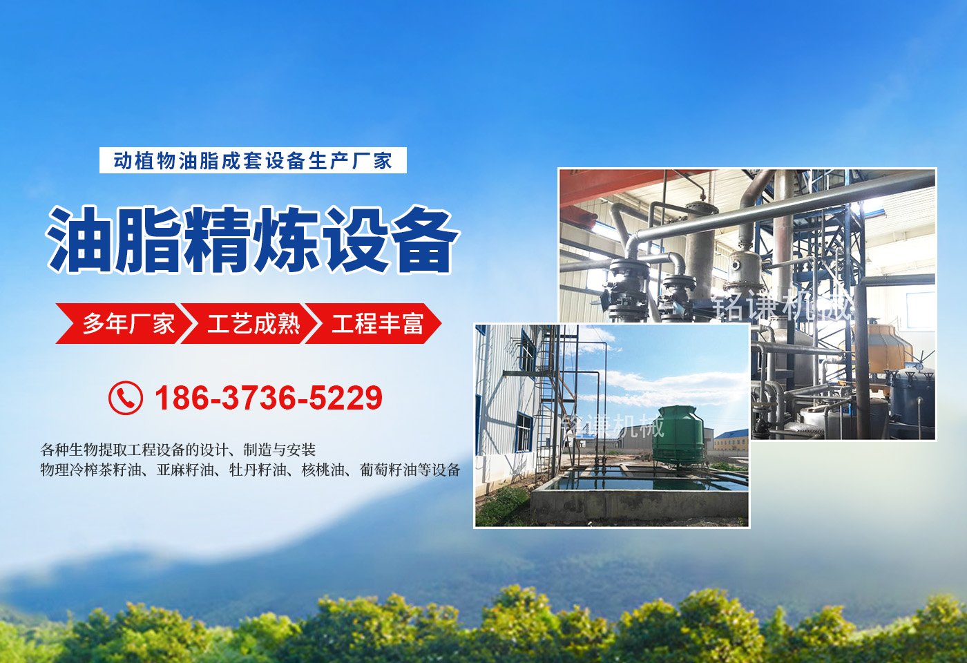 河南省銘謙機械設備有限公司,是集開發(fā)、科研、生產、安裝、調試、售后服務為一體的現代化企業。 我公司擁有優(yōu)良的技術設備,為動物油熬煉設備,無公害化處理設備,核桃油設備,茶籽油設備,牡丹籽油設備,牡丹籽油機械產品的品質提供了有力的技術和質量保證。 ★油料預處理、榨油成套設備的設計、制造與安裝。 ★油料浸出設備的設計、制造與安裝。 ★半連續,連續(化學)物理精煉設備的設計、制造與安裝。 ★茶籽油,牡丹籽油,核桃油,亞麻籽油,葡萄籽油的設備的設計、制造與安裝。 ★各種生物提取工程設備的設計、制造與安裝。 ★各種(豬、牛、羊、雞、鴨等)油廠熬制、精煉設備的設計、制造與安裝。 ★濃香型花生油、菜籽油、茶籽油、亞麻籽油、葵花籽油等設備的設計、制造與安裝。 ★物理冷榨茶籽油、亞麻籽油、牡丹籽油、核桃油、葡萄籽油等設備的設計、制造與安裝。 ★豆類清理設備、雜糧脫皮制粉設備、小麥制粉設備、大米加工流水線、小米加工流水線等設備的設計、制造與安裝。 ★各種過濾設備,化工設備的設計與制造。 我們以工藝和信譽求發(fā)展,以質量和設備求生存。堅持“質量為上,用戶為上”的宗旨為客戶提供完善的技術咨詢和售后服務。始終把產品質量作為企業生存、發(fā)展的主要要務,竭誠歡迎新老用戶光臨指導。